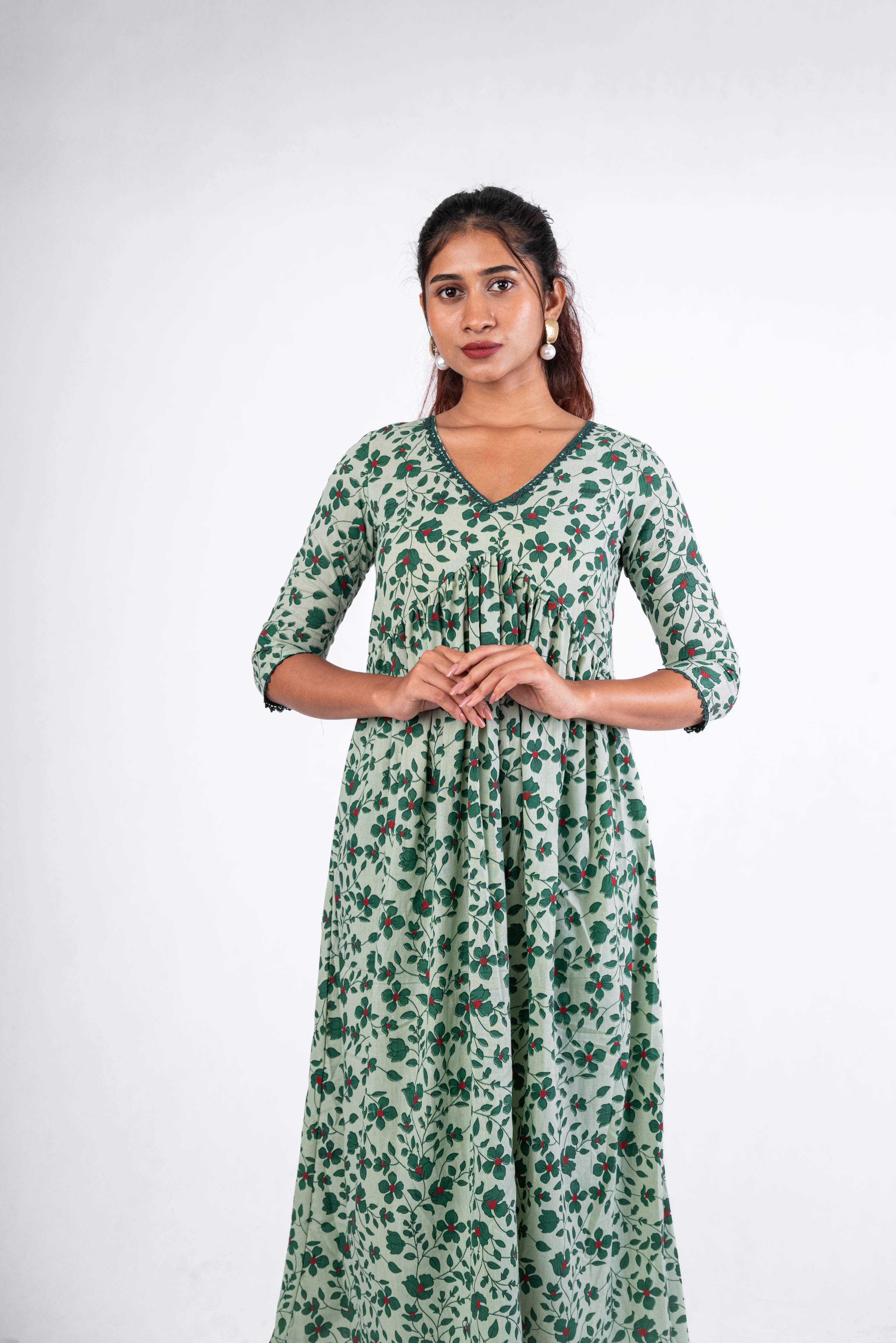 EMERALD BLOOM - GREEN SIDE SLIT SHORT KURTI