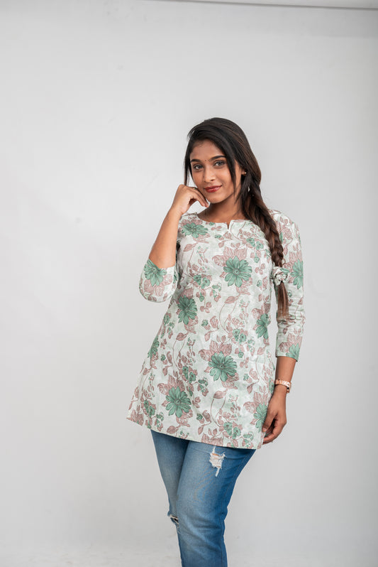 EMERALD BLOOM - GREEN SIDE SLIT SHORT KURTI