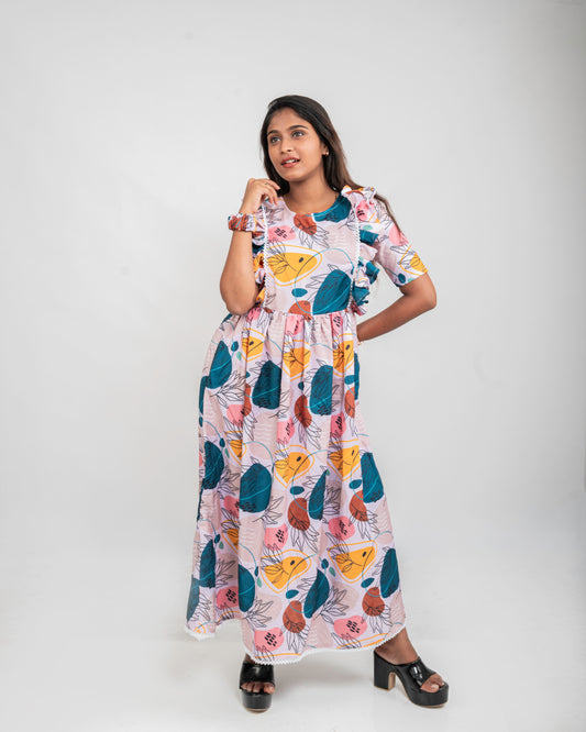 BLUSH BLOOM – PINK ABSTRACT PRINTED GOWN