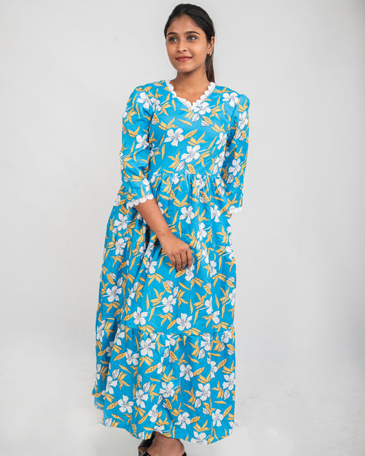 SERENITY BLOOM - BLUE FLORAL CAPRI LENGTH GOWN