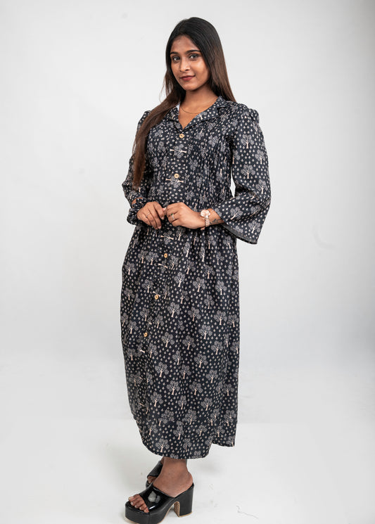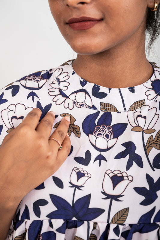 MYSTIC BLOOM - NAVY BLUE & WHITE FLORAL GOWN